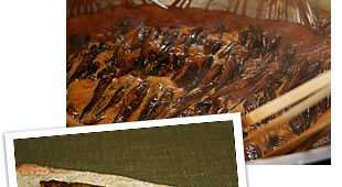 そんな新鮮な状態で皮目に少し焼き目をつけて香りをだした後、大鍋で魚が壊れないようゆっくりじっくり時間を掛けて「あゆの甘露煮」を炊いてまいります。