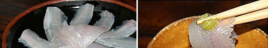 「鮎のお刺身」は背脂がぎっしりのっていてわさび醤油をつけると