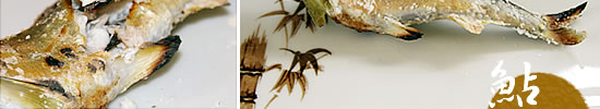 「鮎の塩焼き」も頭から尾っぽまでまるかじりで食べる事ができ