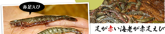 一目瞭然ですが『車海老』と見比べて足が赤い海老という事で『赤足えび』と呼ばれています。